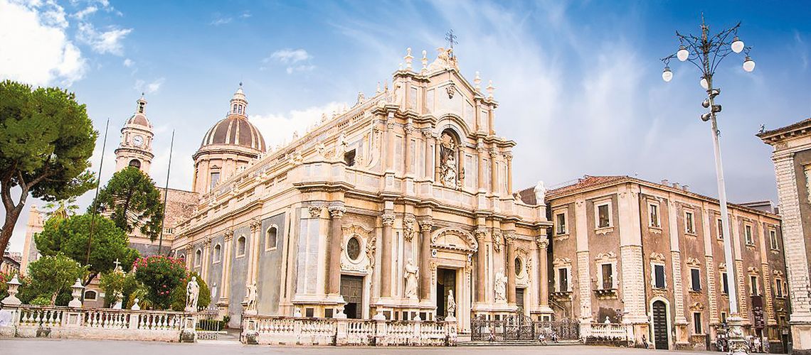 Catania ist eine historische Hafenstadt an der Ostküste Siziliens. Sie liegt am Fuße des Ätna, eines aktiven Vulkans, der auf Wanderwegen bis zum Gipfel bestiegen werden kann. Auf dem ausgedehnten Hauptplatz der Stadt, der Piazza del Duomo, befinden sich der originelle Elefantenbrunnen und die reich verzierte Kathedrale von Catania. In der südwestlichen Ecke des Platzes findet an Werktagen der Fischmarkt La Pescheria statt, auf dem ein buntes Treiben herrscht und der von Fischrestaurants umgeben ist.